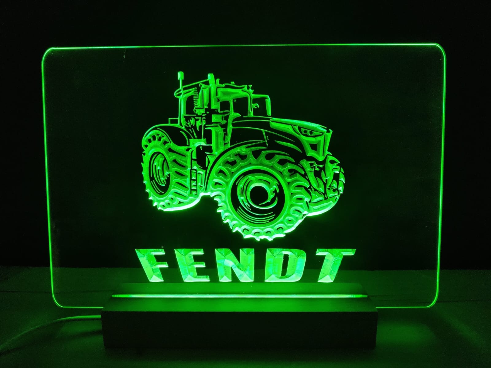 Wunderschönes LED Schild inkl. Buchenfuß mit 7 Farben LED Beleuchtung. Individuelle Anpassung von Helligkeit und Farbwechsel, gesteuert durch den beiliegenden Schalter.